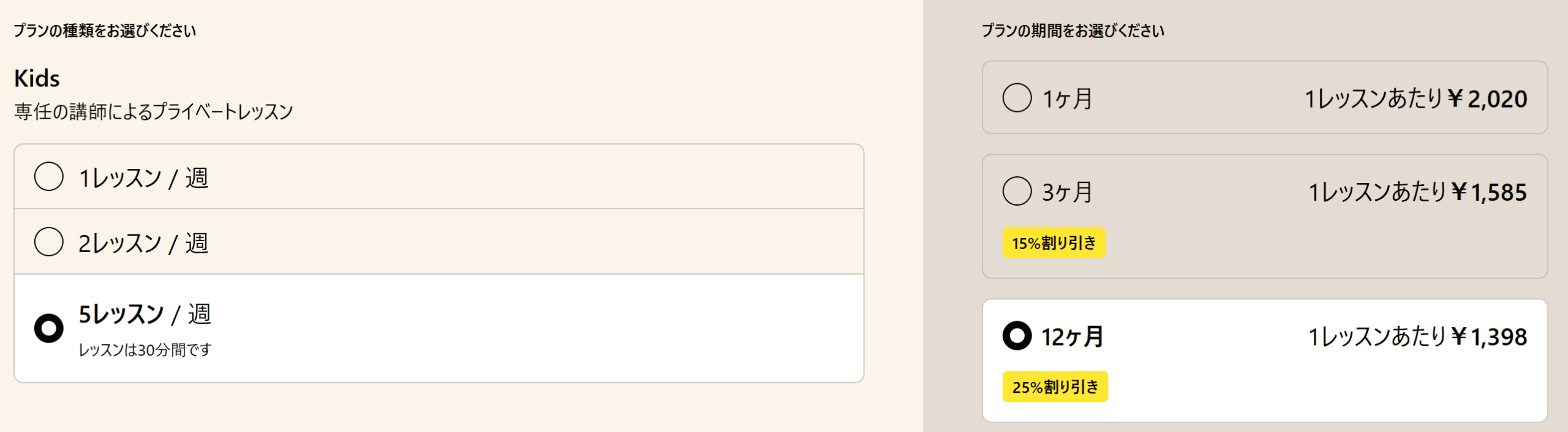 | 12か月 | 週5 | ¥1,398×5Lesson×4week=¥27,960 ← 最大 30%off |